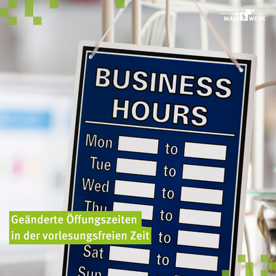 In der vorlesungsfreien Zeit ändern sich die Öffnungszeiten in einigen unserer Mensen, Cafeterien und Cafés. Die genauen Zeiten findet Ihr in unserer Übersicht►