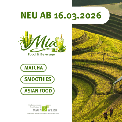 Im Anbau Casino auf dem Campus Westend wurde in den letzten Wochen fleissig gewerkelt: Am Montag eröffnen wir hier unsere neue Pop-Up-Bar MIA. Das neue kleine Paradies für alle, die Asian Food und Smoothies lieben.