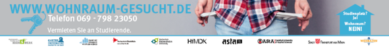 Die Coronapandemie hat auch für viele Studierende durch den Verlust von Jobangeboten große finanzielle Einbußen zur Folge. Im gesamten Rhein-Main-Gebiet sind Studierende deshalb bei der Wohnungssuche dringend auf die Hilfe der Bürger*innen angewiesen. Vor allem für finanzschwache Studierende ist das Wohnen in Campus-Nähe noch unerschwinglicher geworden als zuvor. Seit Ende September rufen wir deswegen wieder alle Bürgerinnen und Bürger Frankfurts und der Region Rhein-Main dazu auf, Studierenden günstige Zimmer und Wohnungen anzubieten. Denn trotz der Coronapandemie können wir keine Entspannung der Wohnraumsituation vermelden. Zum einen übersteigt die Nachfrage das Angebot so stark, dass auch ausbleibende Gaststudierende aus dem Ausland dies nicht ansatzweise kompensieren können. Zum anderen werden viele Studierende aus dem Inland ihrerseits auch auf ein Auslandsstudium verzichten und selbst sonst verfügbaren Wohnraum beanspruchen. Gerade zum Start des Wintersemesters wird deshalb auch der Mangel an preiswertem Wohnraum wieder proportional ansteigen.