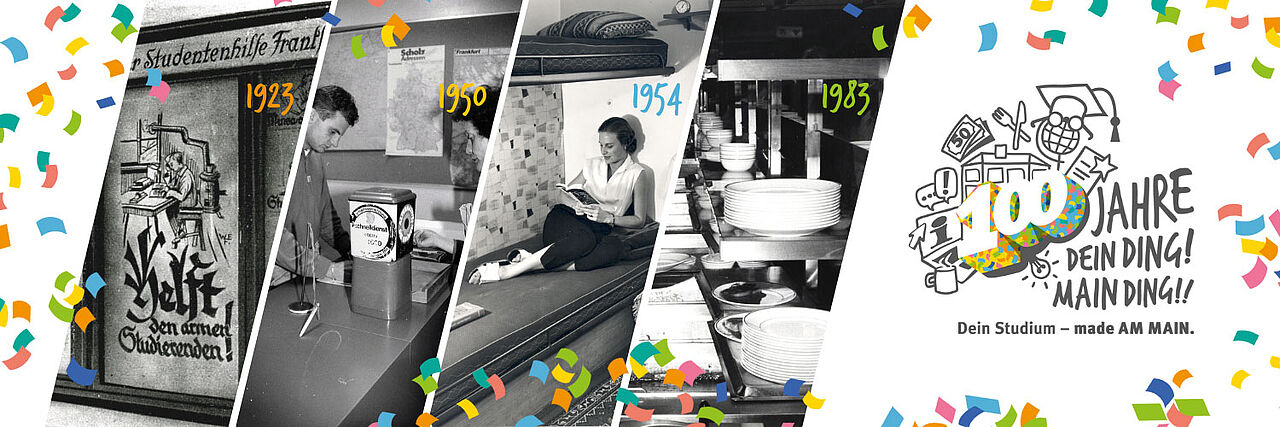 Sehr geehrte Damen und Herren, unser Jubiläumsjahr ging im Wintersemester 2023 / 24 weiter und wir haben ein weiteres Highlight erlebt: Seit dem 30. Oktober läuft nämlich unsere Jubiläumsausstellung zu 100 Jahren Studierendenwerk Frankfurt am Main. Zeitgleich mit der Ausstellungseröffnung ist unsere Chronik #Studierendenwohl – 100 Jahre Studierendenwerk Frankfurt am Main erschienen.