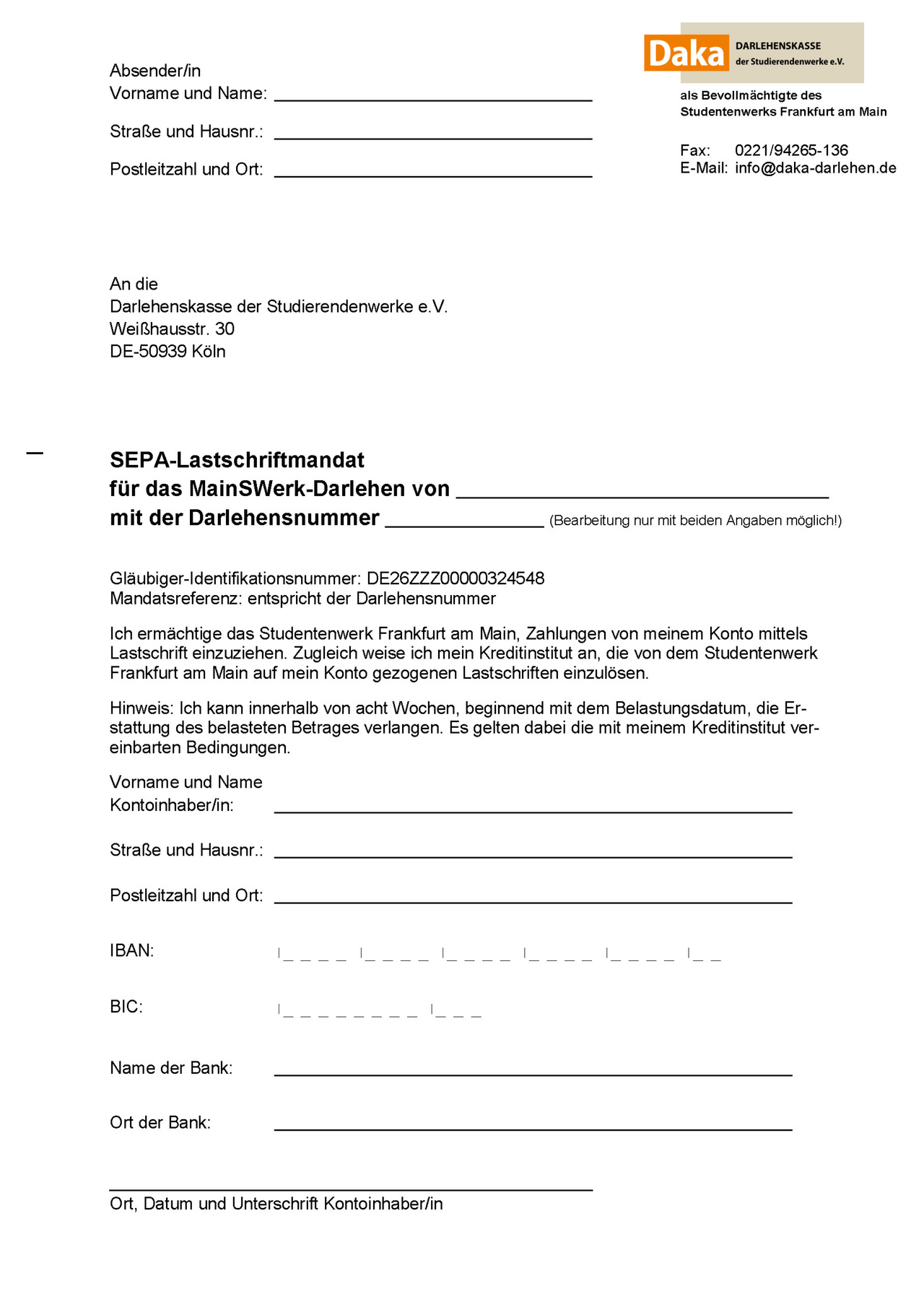 If there is evidence of need, the repayment due date can be postponed interest-free for up to twelve months after the end of the standard period of study. The application must be submitted to the office of the Darlehenskasse der Studierendenwerke e.V. in Cologne, which is responsible for the processing and administration of MainSWerk student loans. If the funded first degree course is followed by a consecutive Master's course, this regulation can be applied again in the Master's course.