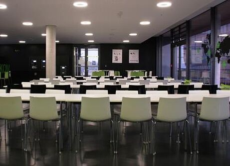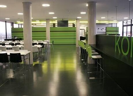 Hier werden mittags warme Speisen, Pasta- und Wokgerichte angeboten sowie Salate, Brötchen, Snacks und Getränke. Der Name der Cafeteria wurde bei einem Namenswettbewerb an der Universität gefunden, Designstudierende aus Wiesbaden haben das passende Gestaltungskonzept kreiert!