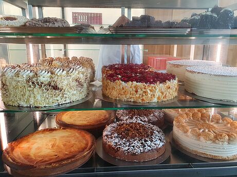 Den Studierenden und Hochschulbediensteten bieten wir hier eine Auswahl an warmen und kalten Getränken sowie Snacks und eine Auswahl an selbstgemachten Kuchen und Torten an. Ab 11:00 Uhr backen wir frische Waffeln.