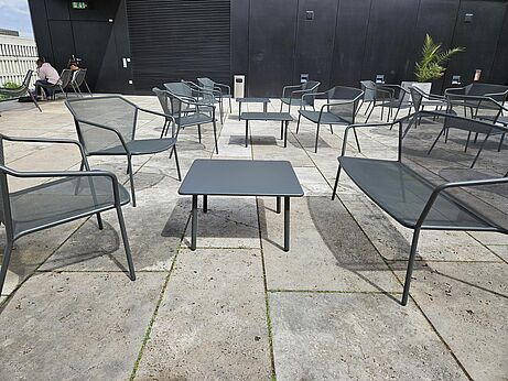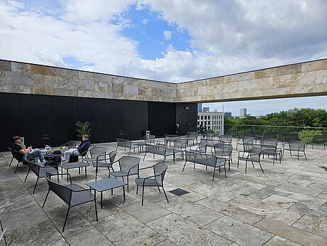 Im Sommer lädt die Dachterrasse zur entspannten Pause mit Skylineblick ein.