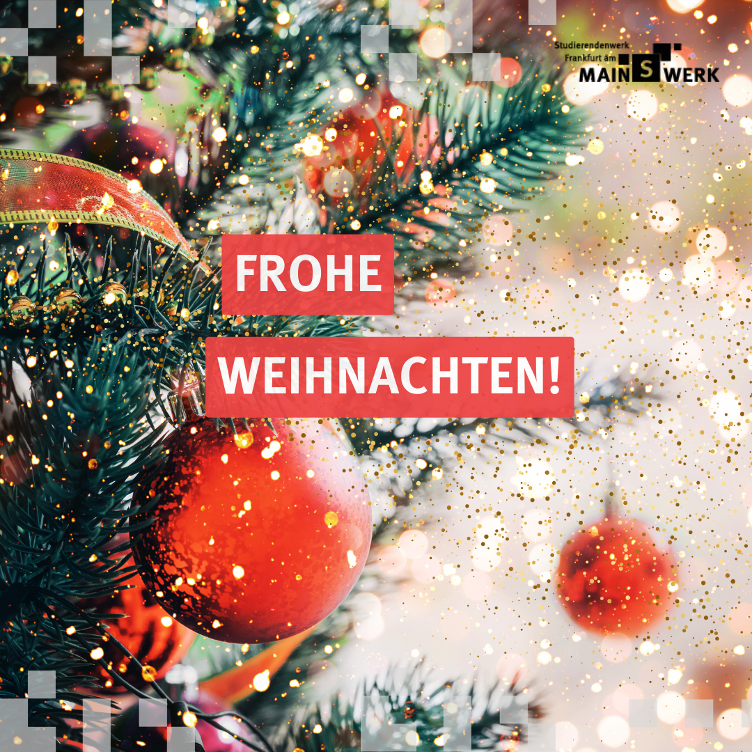Das gesamte Team des Studierendenwerks Frankfurt am Main wünscht frohe Weihnachten und schöne, gemütliche Stunden an den Feiertagen, sowie einen guten Rutsch in das neue Jahr!