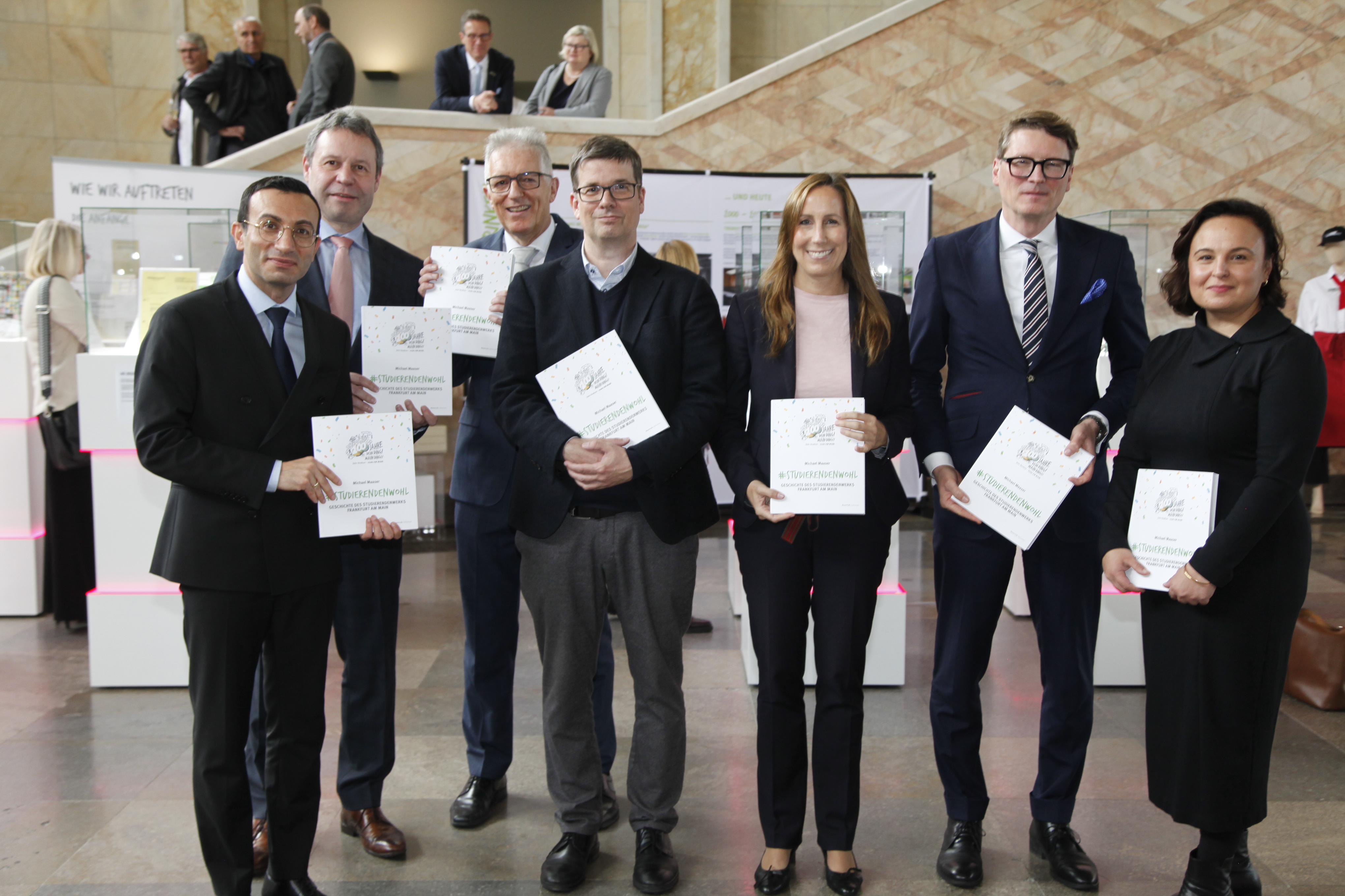 Konrad Zündorf, Geschäftsführer des Studierendenwerks Frankfurt am Main, moderierte den Empfang und freute sich über Ansprachen von Astrid Wallmann, Präsidentin des Hessischen Landtages, Ayse Asar, Staatssekretärin des Hessisches Ministeriums für Wissenschaft und Kunst und Mike Josef, Oberbürgermeister der Stadt Frankfurt am Main sowie Matthias Anbuhl, Vorstandsvorsitzender des Deutschen Studierendenwerks.