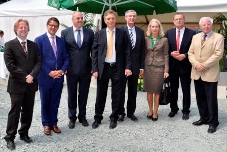 Für den Neubau der Studierenden- und Zollbedienstetenwohnheime an der Hansaallee 141 in Frankfurt am Main haben heute Boris Rhein, Staatsminister im Hessischen Ministerium für Wissenschaft und Kunst, Bernadette Weyland, Staatssekretärin im Hessischen Finanzministerium, Prof. Dr. Manfred Schubert-Zsilavecz, Vizepräsident der Goethe-Universität, Olaf Cunitz, Bürgermeister der Stadt Frankfurt am Main, Konrad Zündorf, Geschäftsführer des Studentenwerks Frankfurt am Main sowie Thomas Platte als Vertreter des Hessischen Baumanagements gemeinsam mit vielen Arbeitern und beteiligten Firmen das Richtfest gefeiert.