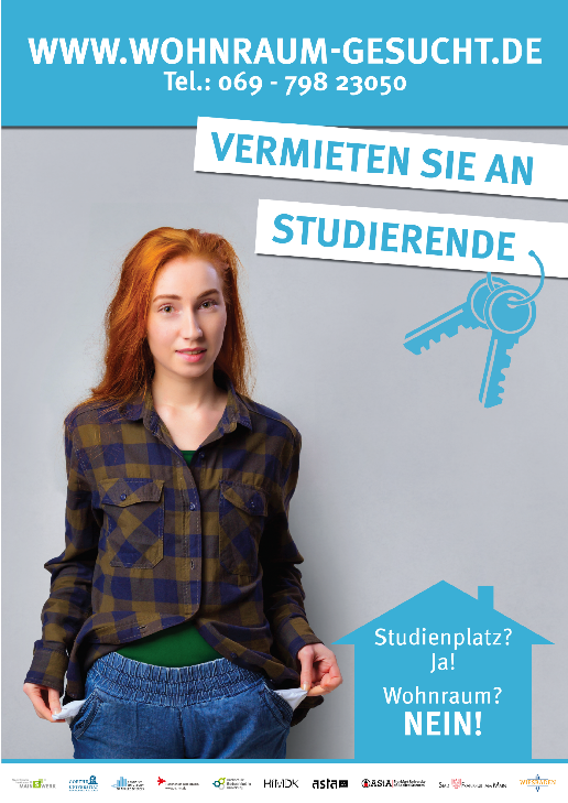 Gemeinsam mit der Goethe-Universität, der Hochschule RheinMain, der Frankfurt University of Applied Sciences, der Hochschule für Musik und Darstellende Kunst, der Hochschule Geisenheim, den ASten der Goethe-Universität und der Frankfurt University of Applied Sciences und den Städten Frankfurt am Main und Wiesbaden machen wir uns dafür stark, dass der Erfolg des Studiums nicht vom Wohnungsmarkt abhängen darf.