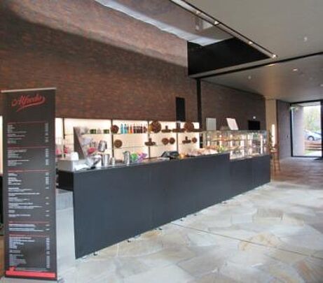 Hier bitten wir unseren Gästen alles für den kleinen Imbiss zwischendurch, von belegten Brötchen, süßen Stückchen und bis zum kleinen Snack. Außerdem gibt es verschiedene Kaffeespezialitäten und kalte Getränke.