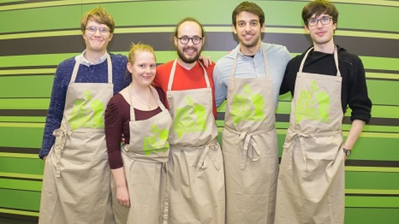 Hendrik, Fabian, Karim, Arthur und Miriam, wir sind alle an der Goethe-Universität. Wir sind Doktoranden im Fachbereich Physik, außer Miriam, sie studiert Philosophie.