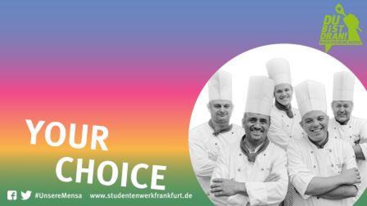 Ob vegetarisch, vegan, Fleisch oder Fisch - Ihr hattet die Wahl und wir haben Euch die 5 Gerichte mit den meisten Stimmen in unserer letzten Aktionswoche "Your Choice" vom 19. bis 23. November serviert. Ein würdiger Abschluss für unsere Aktionsreihe "DU bist dran - Mach Dir Deine Mensa"!