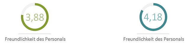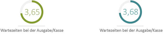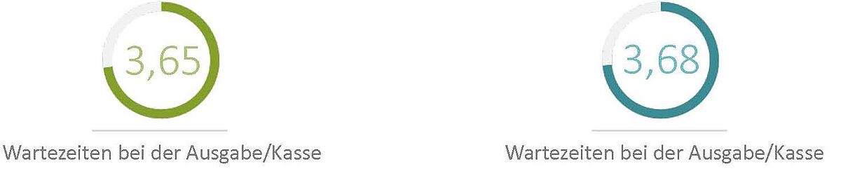 Bei uns steht selten jemand lange in der Schlange, weder an der Ausgabe noch an der Kasse. Für die Wartezeiten haben uns unsere Gäste 3,7 Sterne gegeben. Die schnelle Kasse für bargeldloses Zahlen mit der Studikarte und Bluecode macht sich bezahlt! Und was die Größe der Portionen anbelangt, liegt die Zufriedenheit bei 3,5 Sternen.