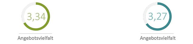 Unsere Angebotsvielfalt wird mit 3,3 Sternen von unseren Gästen gut bewertet. Das zeigt uns, dass wir mit unseren umfangreichen Speisenplänen, Sonderaktionen und mit mensaVital auf dem richtigen Kurs sind. Auch freut es uns, dass unser Essen lecker schmeckt: Unsere Gäste gaben uns dafür im Schnitt 3,2 Sterne. Hier schneiden wir im Vergleich mit anderen Studierendenwerken (2,8 und 3,0) gut ab.