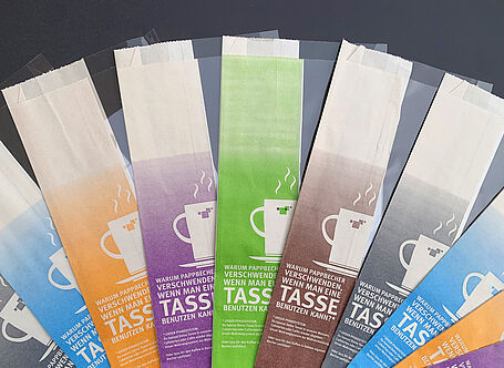 Da unsere Gäste weiterhin Einwegverpackungen nachfragen, bieten wir diese an; wir berechnen jedoch 0,40 € Aufpreis für den Einweg-Kaffeebecher►. Außerdem produzieren wir die Einwegverpackung so nachhaltig wie möglich. Deshalb werden unsere Einweg-Kaffeebecher aus FSC-Mix Papier mit erneuerbarer CPLA-Beschichtung hergestellt, bestehen aus zu 100 % nachwachsenden Rohstoffen und sind in industriellen Anlagen kompostierbar►.