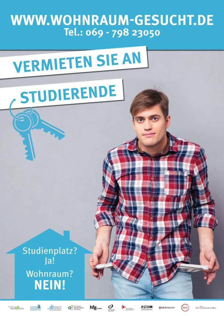 Gemeinsam mit der Goethe-Universität, der Hochschule RheinMain, der Frankfurt University of Applied Sciences, der Hochschule für Musik und Darstellende Kunst, der Hochschule für Gestaltung Offenbach, der Hochschule Geisenheim und den ASten von Goethe-Universität, der Hochschule RheinMain sowie der Frankfurt University of Applied Sciences und der Stadte Frankfurt am Main machen wir uns dafür stark, dass der Erfolg des Studiums nicht vom Wohnungsmarkt abhängen darf.
