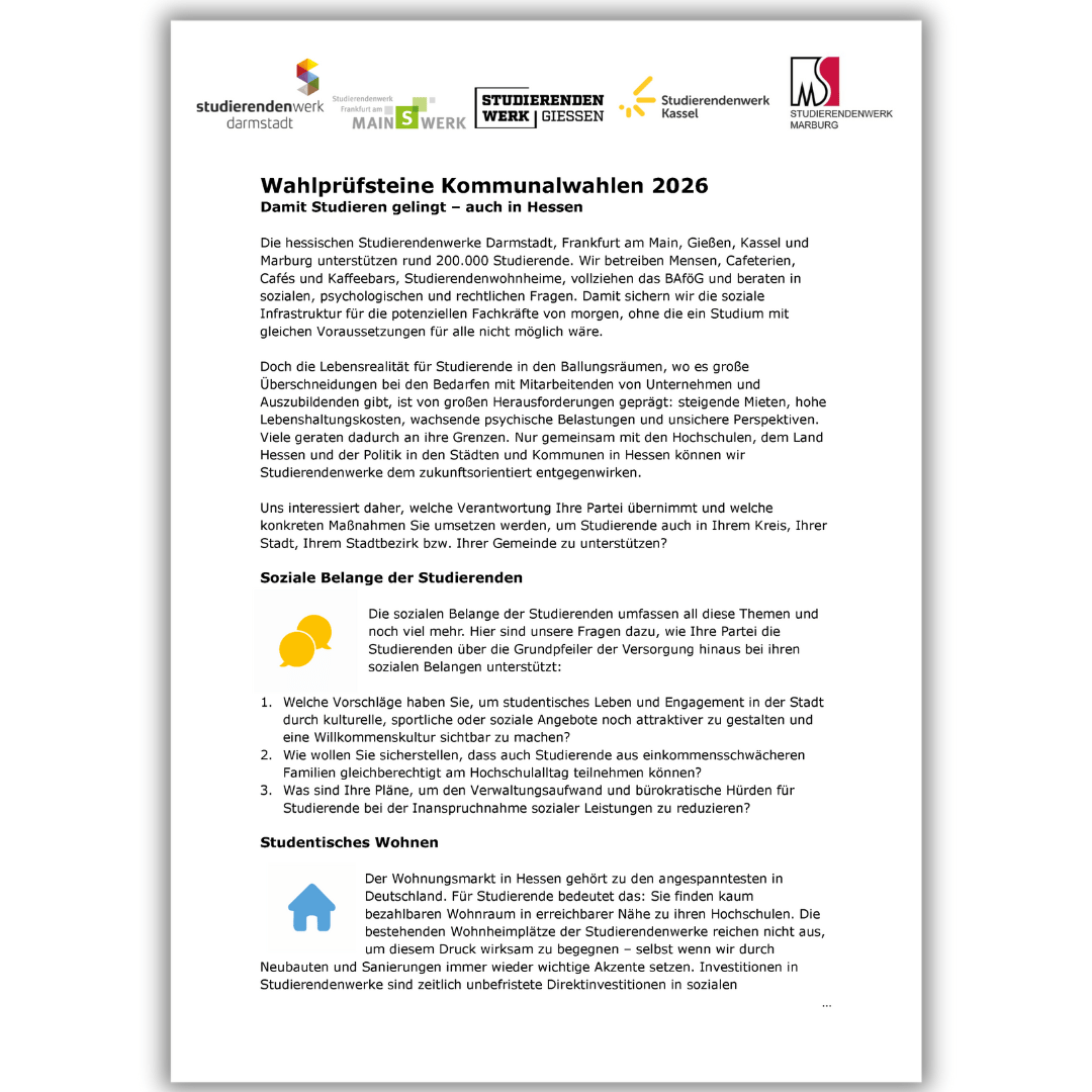 Wahlprüfsteine der hessischen Studierendenwerke zur Kommunalwahl 2026►