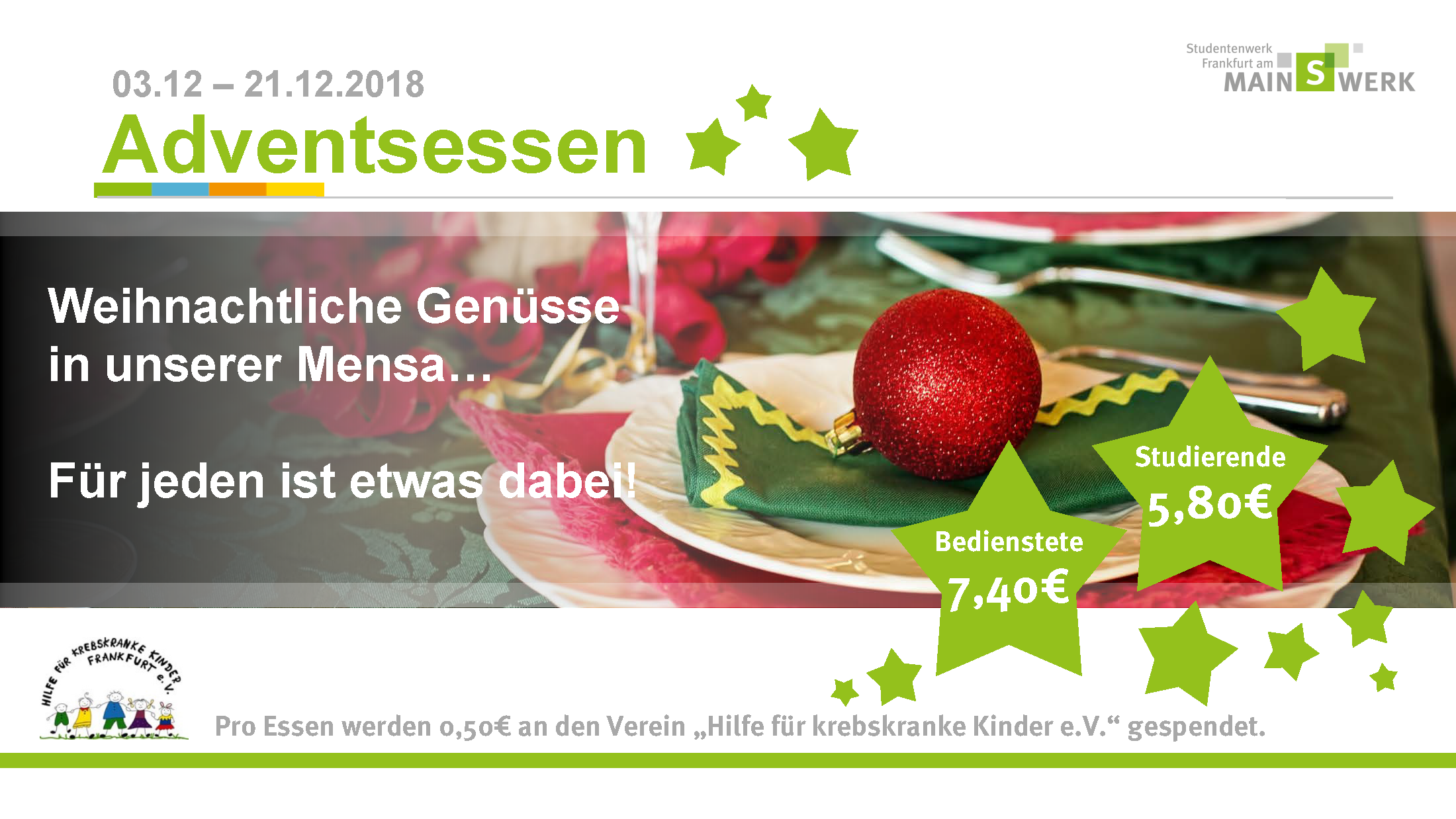 Weihnachtliche Genüsse für den guten Zweck in den Mensen des Studentenwerks Frankfurt am Main