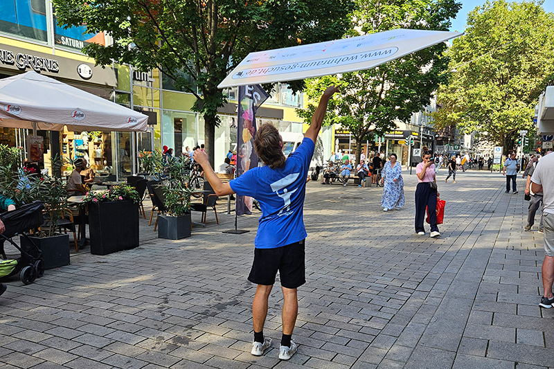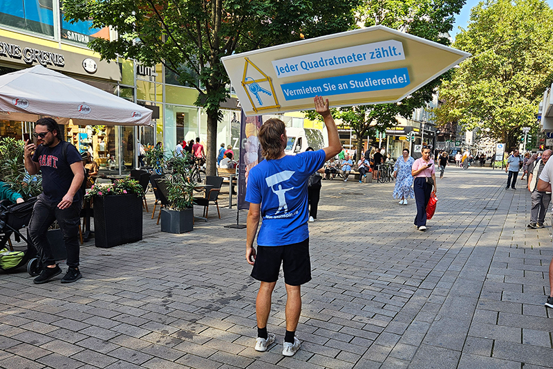 Die Wohnheimplätze des Studierendenwerks sind wegen der geförderten Mieten von durchschnittlich 334 EUR sehr begehrt. Wie eine aktuelle Berechnung des Statistischen Bundesamtes vor kurzem ergeben hat, ächzen besonders Studierende, die nicht mehr im Elternhaus leben, unter den hohen Mieten, die für sie ein Armutsrisiko darstellen. Im Rahmen der Kampagne werben die Institutionen daher explizit darum, Zimmer und Wohnungen anzubieten, die mit einem studentischen Budget bezahlbar sind. Neue Aufmerksamkeit haben der Kampagne akrobatische SignSpinner verliehen, die in den Fußgängerzonen in Frankfurt am Main und Wiesbaden das Angebot bewerben.