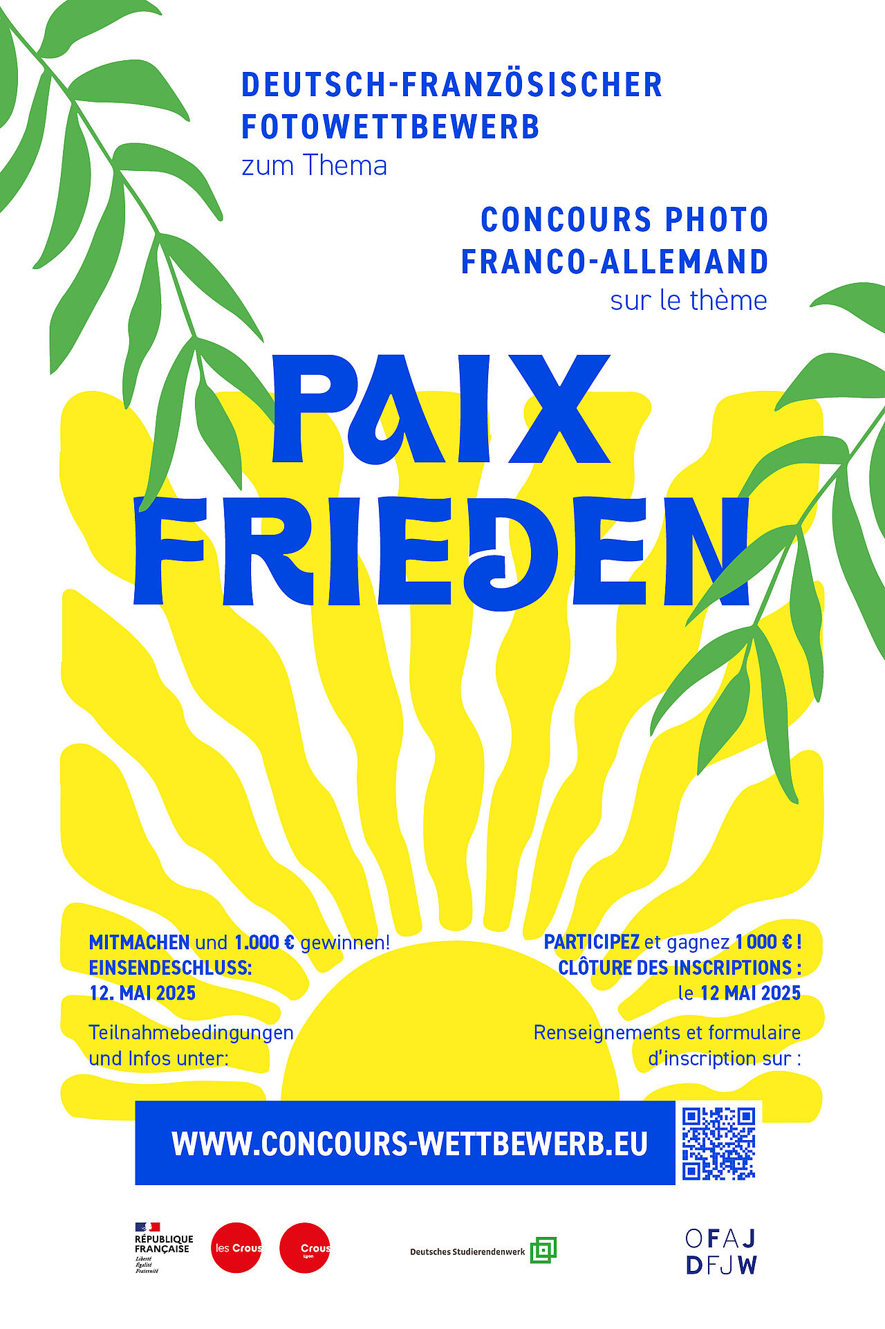 Der Deutsch-Französische Fotowettbewerb wird seit zehn Jahren vom Deutschen Studierendenwerk in Kooperation mit seinem französischen Partner "Centre des Oeuvres universitaires et scolaires" (Cnous), dem Dachverband der französischen Studierendenwerke organisiert und finanziell vom Deutsch-Französischen Jugendwerk (DFJW) unterstützt. Das Projekt richtet sich an Studierende aller Fachrichtungen aus Deutschland und Frankreich und hat zum Ziel, die Idee der Deutsch-Französischen Freundschaft hervorzuheben. Zum Jahresthema 2024 "MEIN RAUM/MON ESPACE" gingen 566 Einreichungen ein - eine Auswahl tourt als Wanderausstellung durch Deutschland und Frankreich und ist als digitale Ausstellung► zu sehen.